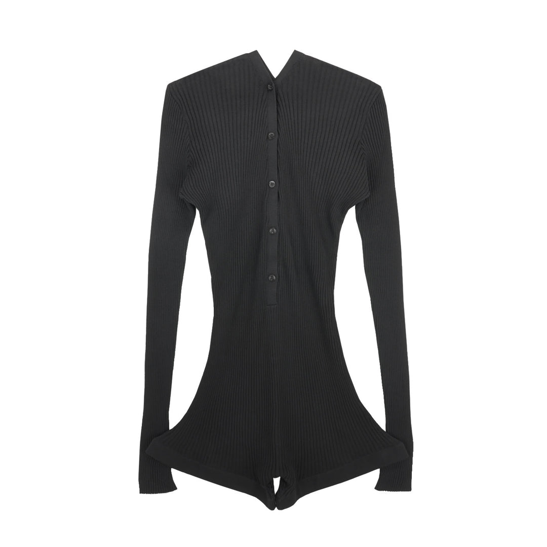 black knit buttoned bodyshort