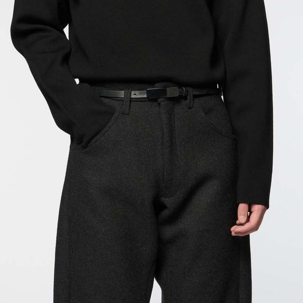 オマールアフリディ初のベルトは、スリムで高品質なブライドルレザーで作られ、オリジナルのエナメルコーティングされたバックルが特徴です。バックルはレザーと色を合わせており、より構築的なメンズウェアにエレガントなアクセントを加えています。