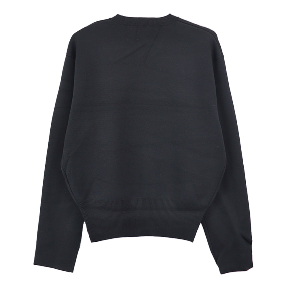 代表型であるクルーネックジャンパーは、100%メリノウールの細糸を使って2層で編まれており、ボンディングのような質感を生み出しています。袖口はリブなしで仕上げられており、袖からフラットな編み地が続いています。ジャンパーはシンプルなクルーネックデザインで仕立てられ、ウエストラインには深めのリブが施され、シルエットに引き締まった形を加えています。このアイテムは、クラシックなオマールアフリディワードローブのシンプルさを体現しています。