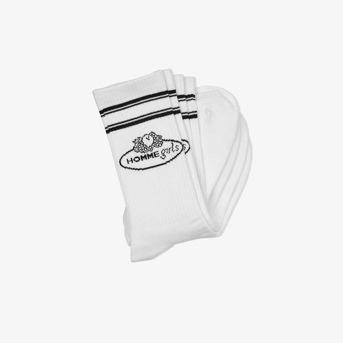 - ホワイトのコットンリブクルーソックス3足セット