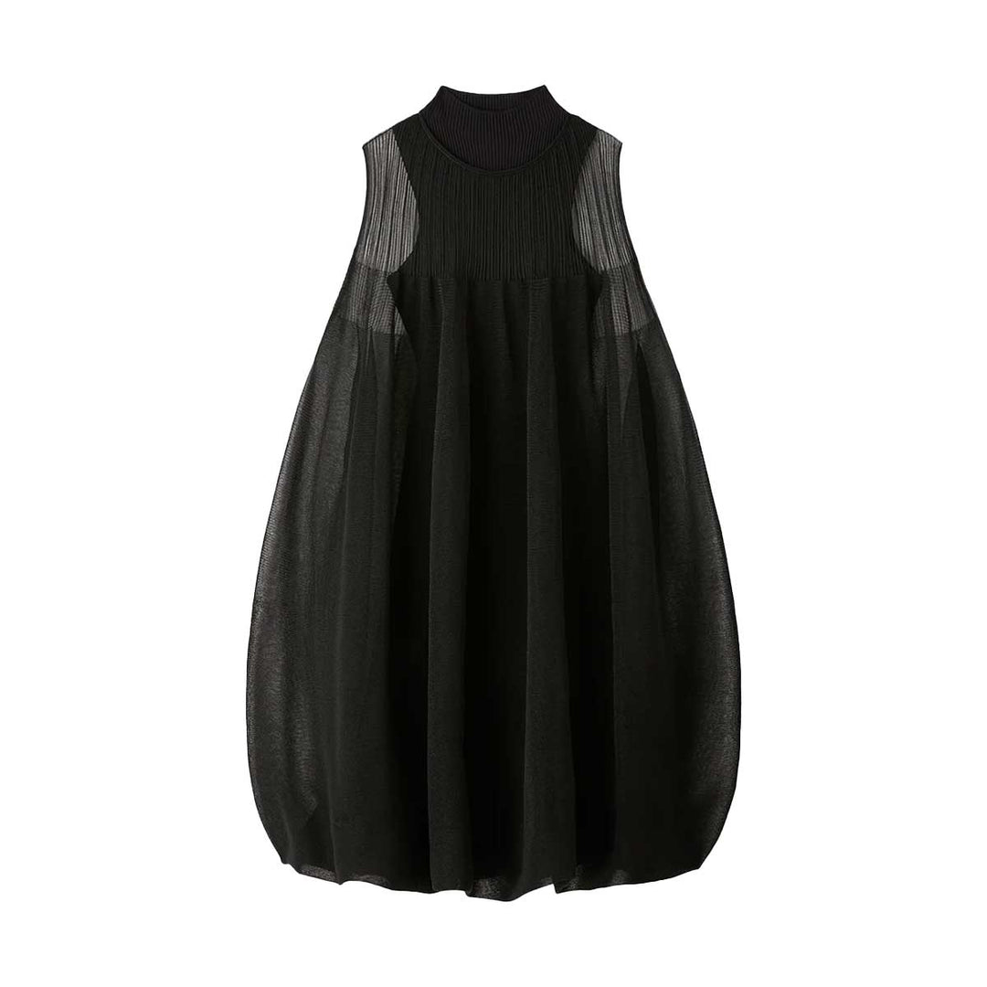 OVERWRAPPED POTTERY BUST FLARE SLEEVELESS DRESS