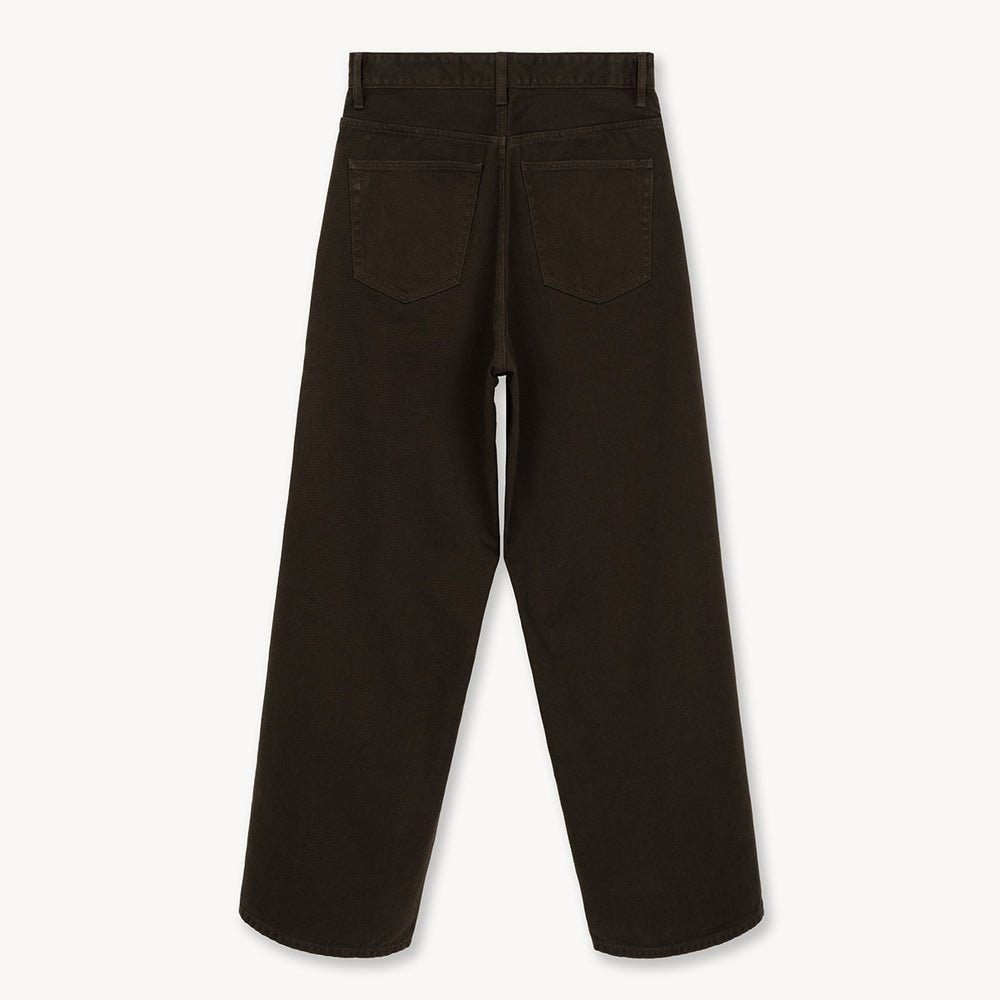 「Steve Cut Jeans」は、ガーメントダイ加工を施したオーガニックコットンツイルを使用。ミッドウェイトでストレートシルエットに仕立てられ、ウォッシュ加工による柔らかな風合いが特徴です。ボタンフライ仕様で、リベットを省いた5ポケットデザインにより、ミニマルな印象を演出。生地はピーチスキンのようななめらかな質感を持っています。