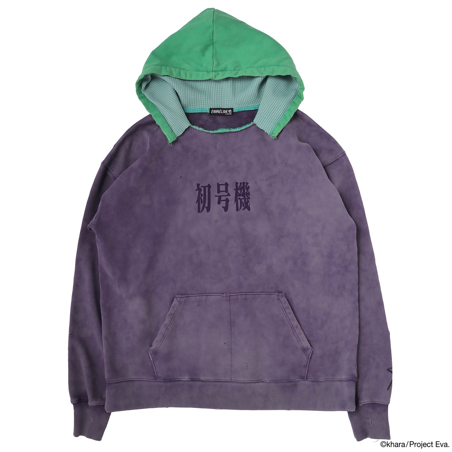 TVシリーズ『新世紀エヴァンゲリオン』から、初号機と弐号機を表現した後付けパーカーが登場。 素材使いや生地感、色合いやディテールまで、ビンテージの後付けスウェットパーカーに見られる特有の魅力を丁寧に再現した今作。初号機と弐号機、それぞれのキーカラーでもある紫と赤をベースに、フードカラーで味付けしたデザイン。フードの裏地には裏地はサーマル張りのW-FACE仕様、ボディーの後染めのムラ感がリアルなビンテージの雰囲気を演出しております。 また前面にはそれぞれに機体名を、背面には”汎用人型決戦兵器”を同色の染み込みプリントでデザイン。左袖にはEVANGELION:95のアイコン"95"をプリントしました。