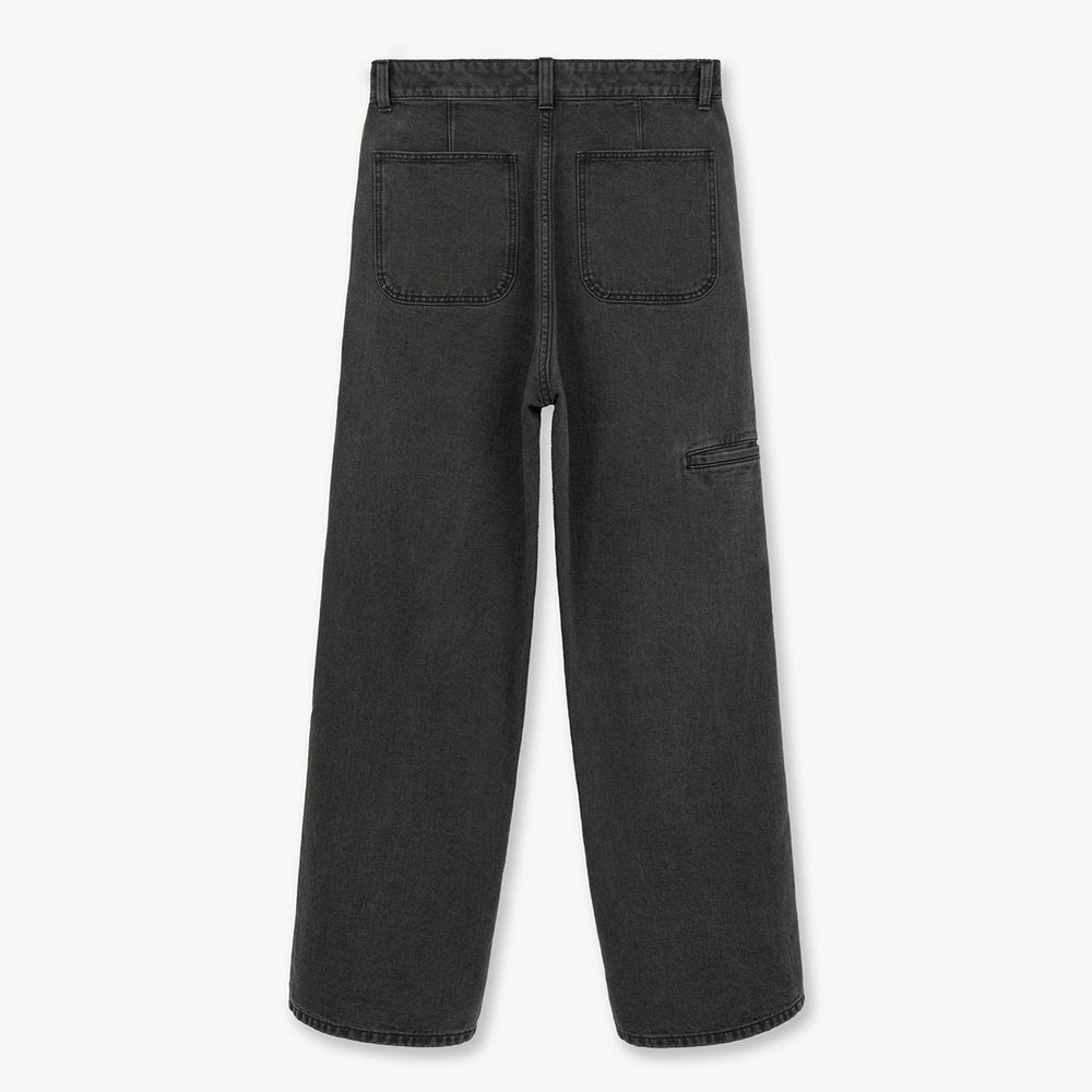 このパンツは、ワークパンツを再解釈しつつ、柔らかくシルキーな質感を持たせています。さらにシェービングと起毛加工を施すことで、よりしなやかで流動的な風合いとなり、オールシーズン着用しやすい仕上がりに。ロープ染色は、糸を縄状に撚り合わせて染料槽に浸す工程で、染料が繊維の芯まで浸透しきらないことで独特の深みを生み出す、最適な染色方法と広く認識されています。金具にはriri製ファスナーを採用し、細部まで洗練された一本となっています。