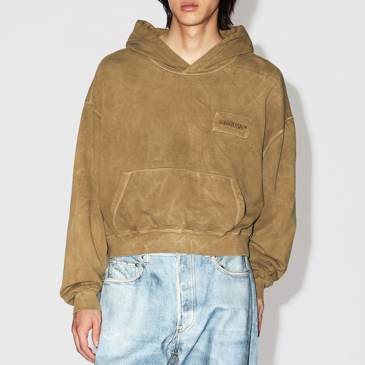 洗いをかけた風合いと、やや短めの着丈が特徴のフーディー。 胸元にはトーンオントーンの刺繍ロゴをあしらい、ミニマルな佇まいの中にさりげない表情をプラス。 コンパクトなシルエットが、スタイリングに抜け感を与えてくれます。