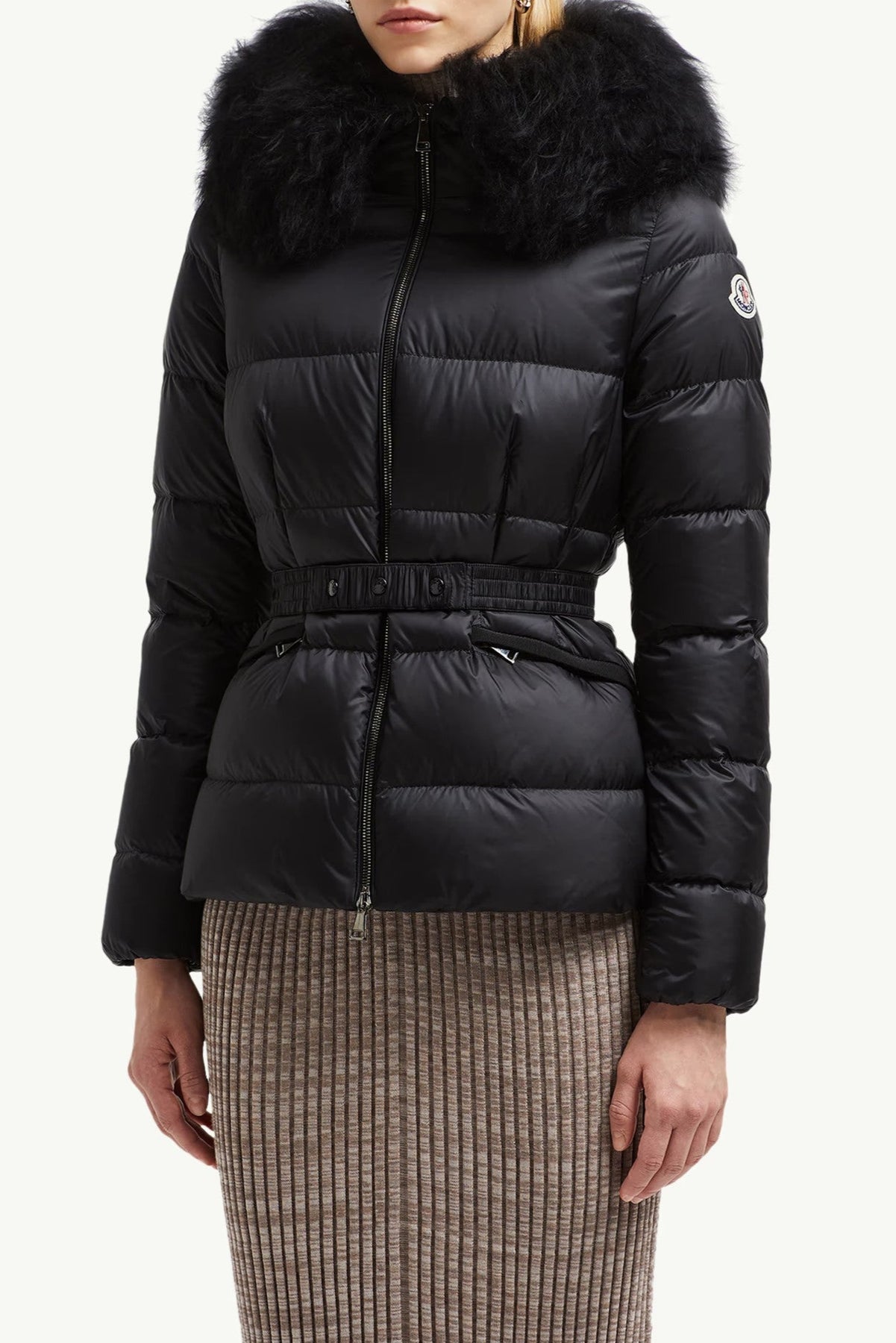 洗練された冬の装いを演出するBoedショートダウンジャケットは、ベルト付きのウエストで強調されたフェミニンなシルエットです。ロングセゾン素材を使用し、毛足の長いラグジュアリーなシアリングのトリミングが施されています。