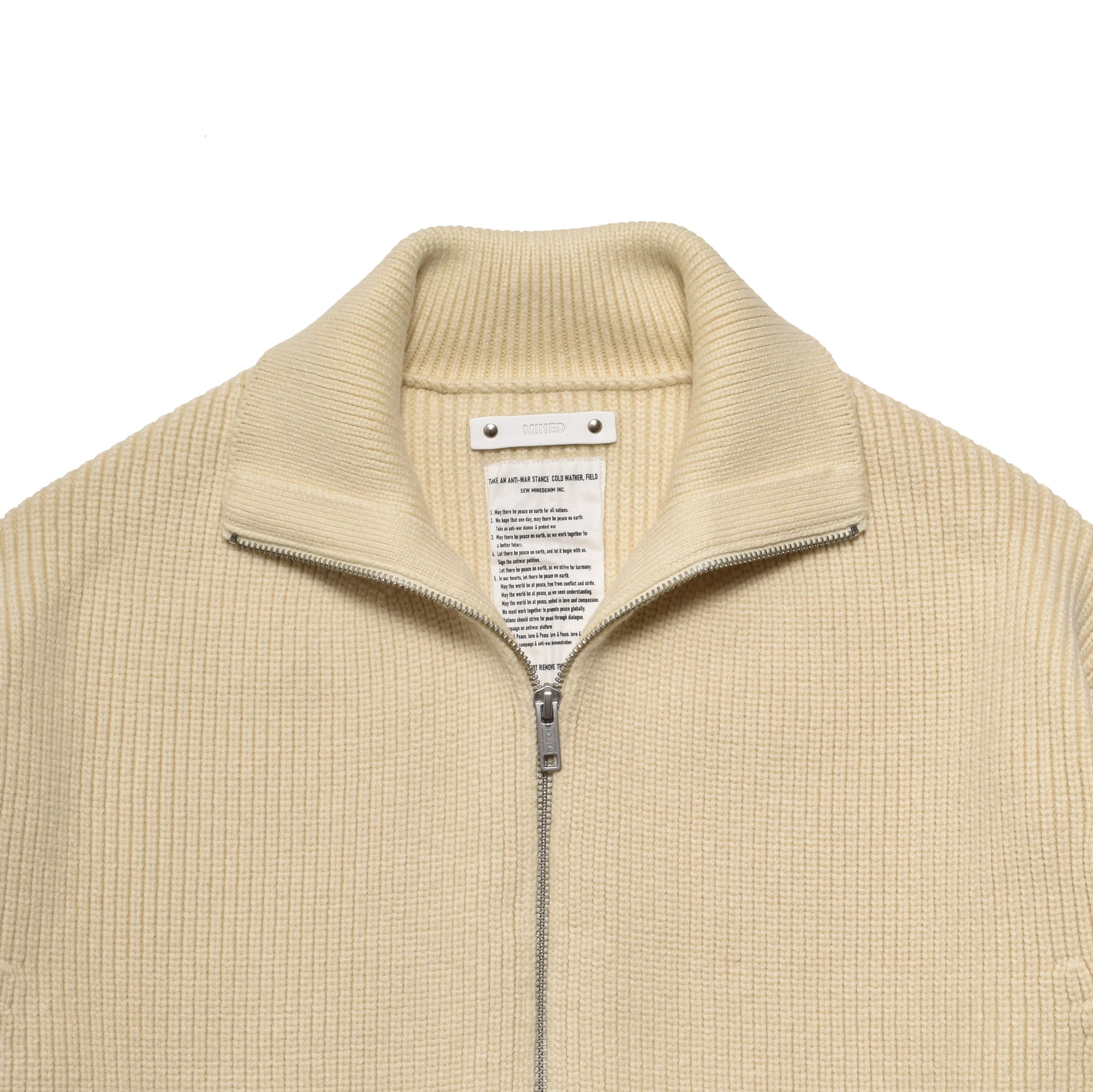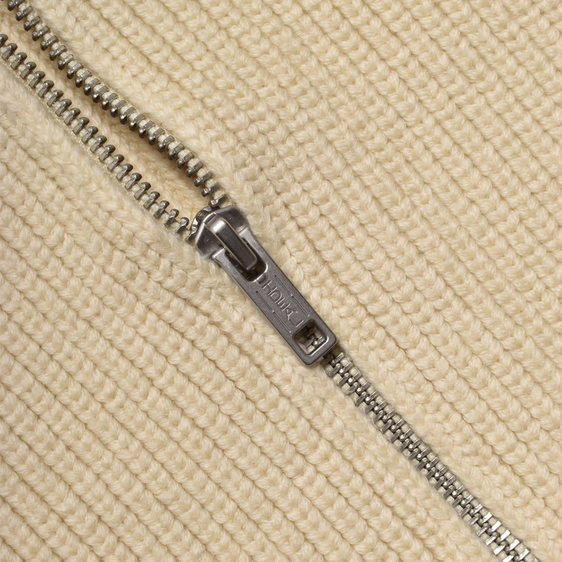 敢えて撚りをかけずコットン本来の柔らかな風合いと光沢を引き出した太番手のニット糸を用い、最大限度目を詰めることで重厚感を演したジップアップトラッカーニットブルゾン
