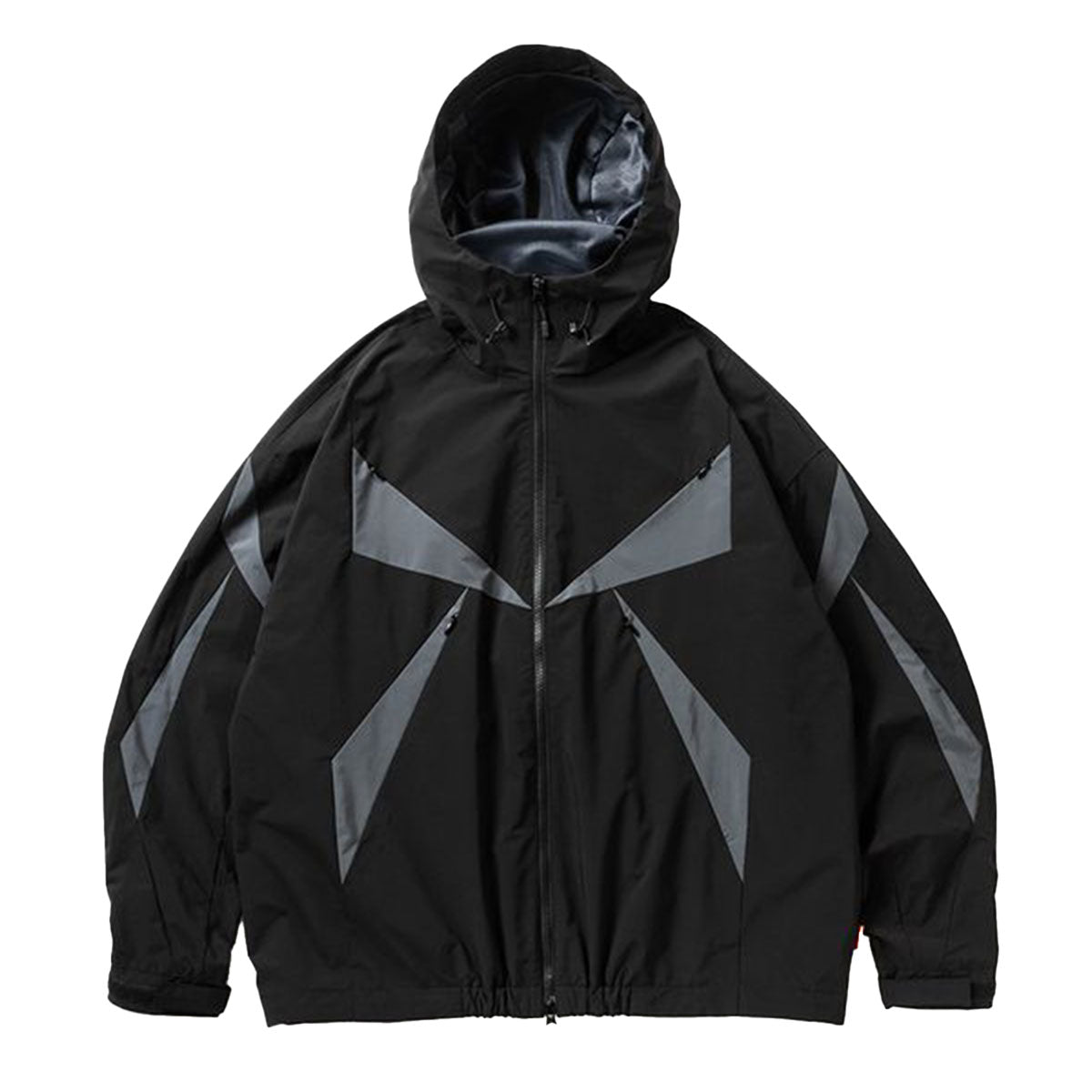 トライアングルの切り替えデザインを施したフード付きジャケット。 高密度で柔らかく、マット感のある超微起毛ポリエステルウェザー生地を表地に採用 し、裏地はメッシュ素材でさらりとした着心地。 切り替え部分にファスナーを配置したコンシールドポケットを搭載し、前身頃に4箇所、背面の切り替えにも大きく1箇所ポケットがある設計。 さらに身頃内側にもメッシュ素材のインナーポケット付き。 フードには顔まわりだけでなくの後頭部付近にもドローコードを巡らせ細かなフィッ ト感の調整が可能。 フロントオープニングはダブルファスナー仕様。 袖口はベルクロストラップのアジャスター付き。 裾はドローコードでシルエットの調整が可能。 フードのフロント部分にロゴ刺繍、左のアウトシームにオレンジのピスネーム付き で、コードロックや引き手パーツもロゴ入り。