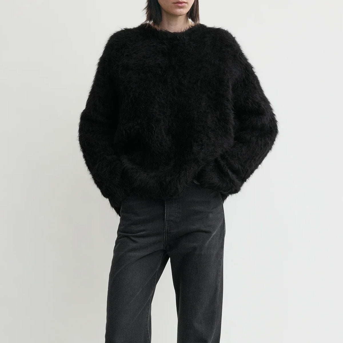起毛アルパカ混紡糸で編み上げた、心地よい着心地のシグネチャー「TOTEME」セーター。ドラマチックなボックスシルエットに、オーバーサイズのボリュームと長めの袖が特徴です。