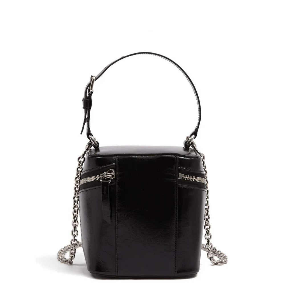 Belted leather bucket bag