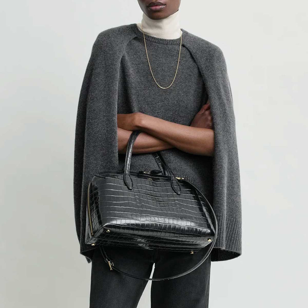 T-lock croco-embossed top handle
