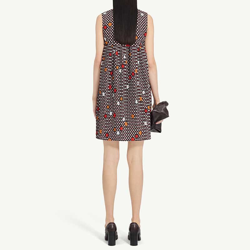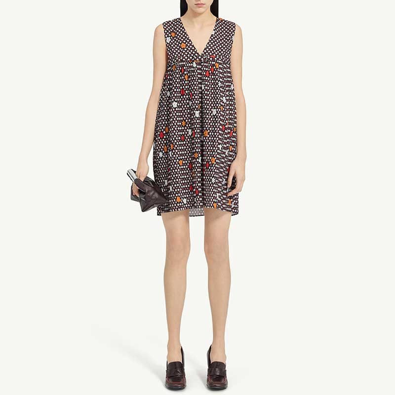 エンパイアシームと流れるようなプリーツ加工により、構造と着心地のバランスを実現しています。シンプルさと自由さが夏の装いを特徴づけた1960年代のホリデースタイルを彷彿とさせるカットです。体から自然に離れるようにデザインされているため、楽に着こなせます。