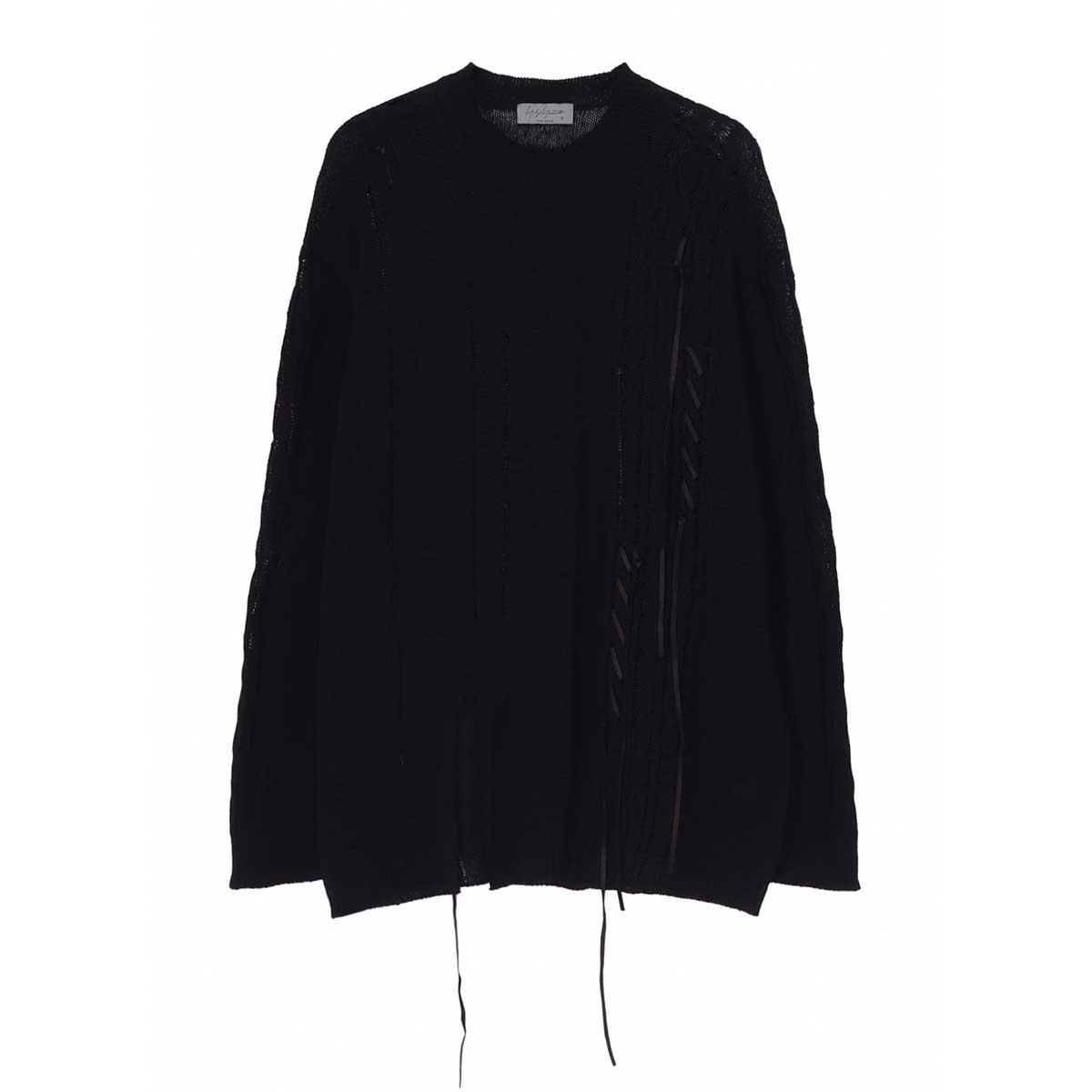 Knitted with leather cords using cotton and linen yarn. In order to retain many of the characteristics of linen, the material is made from thick, tightly twisted, gas-seared yarn with a high linen content. Thick yarns are spun fewer times, and when made into products they tend to droop with repeated wear, so we twist them tightly to give them a firm, resilient feel. The tight twisting prevents the fabric from losing its shape, and the gas burning process burns off the surface fuzz, giving the fabric an even cooler feel.