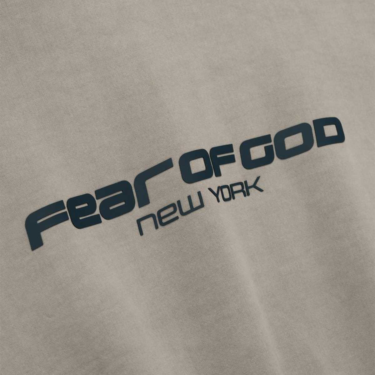 The Heavy Fleece Cropped Relaxed Sweatshirt is crafted from 520gsm heavy fleece and pigment-dyed for a rich, rich color. It features a relaxed, cropped silhouette, dropped shoulders for a relaxed drape, and bold proportions. The crew neck features a "Fear of God New York" lock-up print on the front and an "Essentials" HD print graphic on the arm.