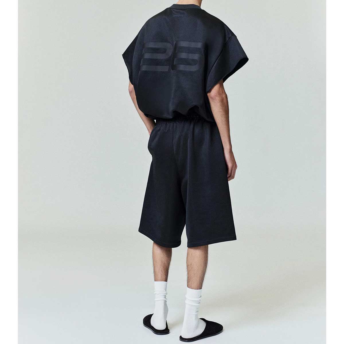This '90s muscle tee features a voluminous '90s silhouette and is crafted from heavyweight satin fleece for a smooth, satin-like feel. It features a bold "26" HD print on the back and Fear of God Essentials' signature rubber label on the collar.