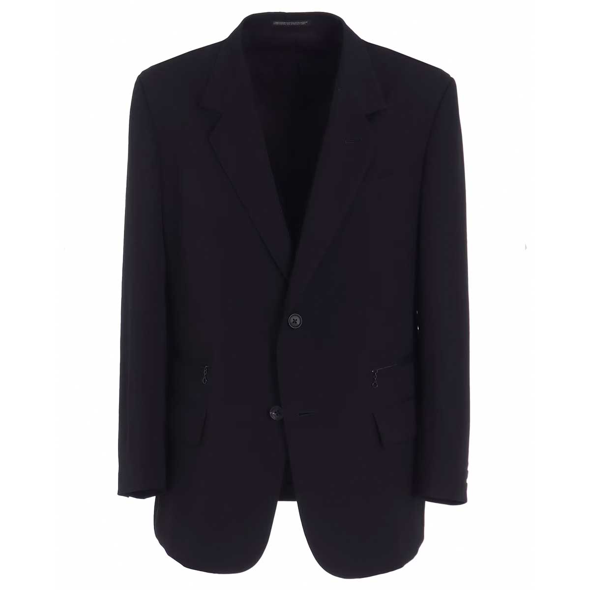 ウールギャバジンジャケット。 生地は、仕上げの工程でセット性を弱くすることにより織物に軽くシワやシボを付け、ウール本来の風合いに仕上げたヨウジヤマモト社の定番素材であるウールギャバジンを使用しています。左右にボールチェーンファスナー付きのチェンジポケットを配し、シンプルな中に存在感のあるディテールを加えています。
