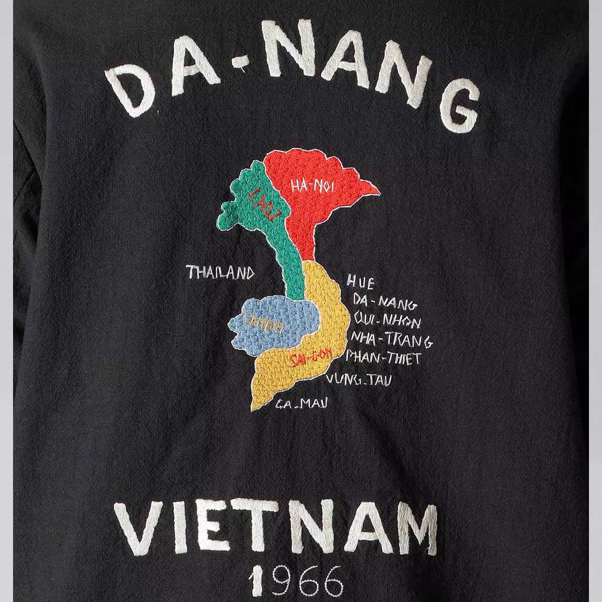 A collaboration item between Y's for men and MASSES. This souvenir blouson is made from cotton, with a slubby texture created by neps, and features a vintage-inspired design on both arms that samples the 1960s embroidery.