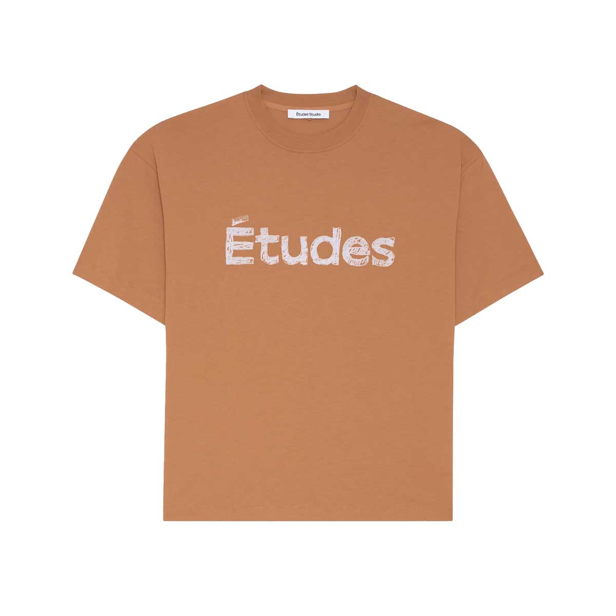 The Relax études t-shirt is a short-sleeve jersey t-shirt made in Portugal from 100% organic cotton. It has a relaxed fit and a ribbed crew neck. It features a chalk-effect Études Studio logo printed on the front and back, and a tonal É logo embroidered on the lower left front.