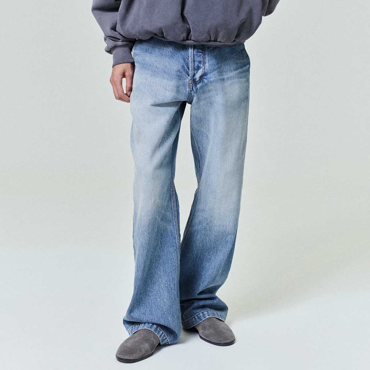 Crafted from 100% Japanese cotton denim, these work pants achieve a vintage aesthetic through a medium vintage wash. They offer a relaxed fit with baseball belt loops, front side seam pockets, and two pockets on the back waistband seam. The right back pocket features Fear of God’s iconic 4-stitch label.