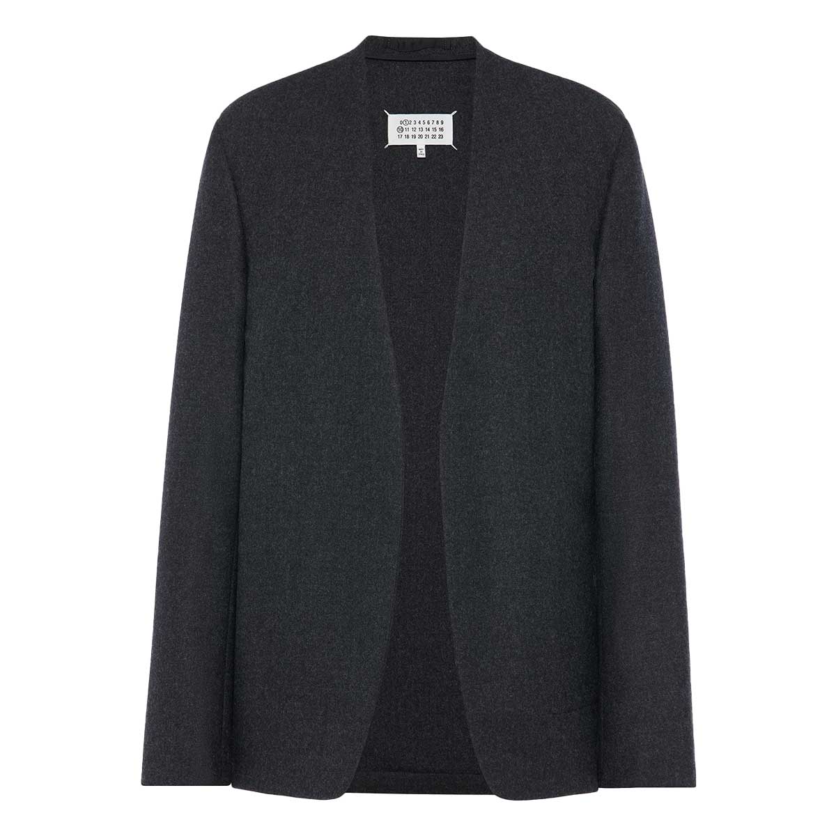 This minimalist, tailored jacket is crafted from virgin wool and features a clean, collarless silhouette. The open front creates refined lines, while sharp cuts give a relaxed fit a quiet sense of structure, representing the essence of tailoring in its purest form.