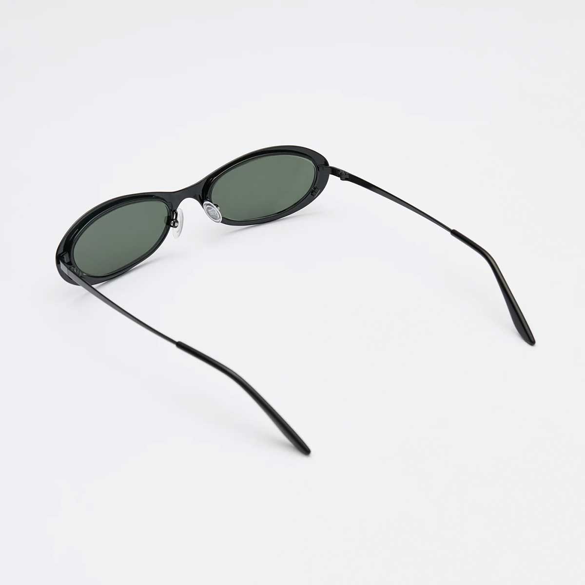 These Obsidian Ruckus Tad sunglasses are unisex eyewear handmade in Italy with German silver frames and bronze temples. They feature Carl Zeiss Vision dark green lenses with filter category 2 protection and a scratch-resistant coating. They also come with a travel case.