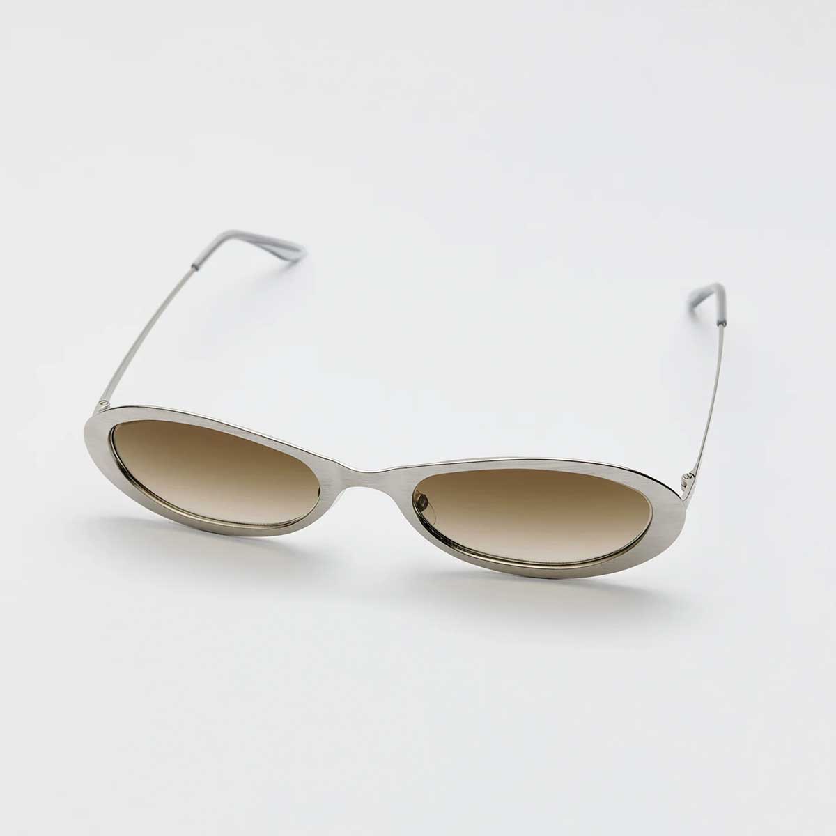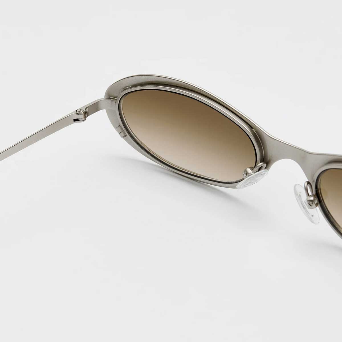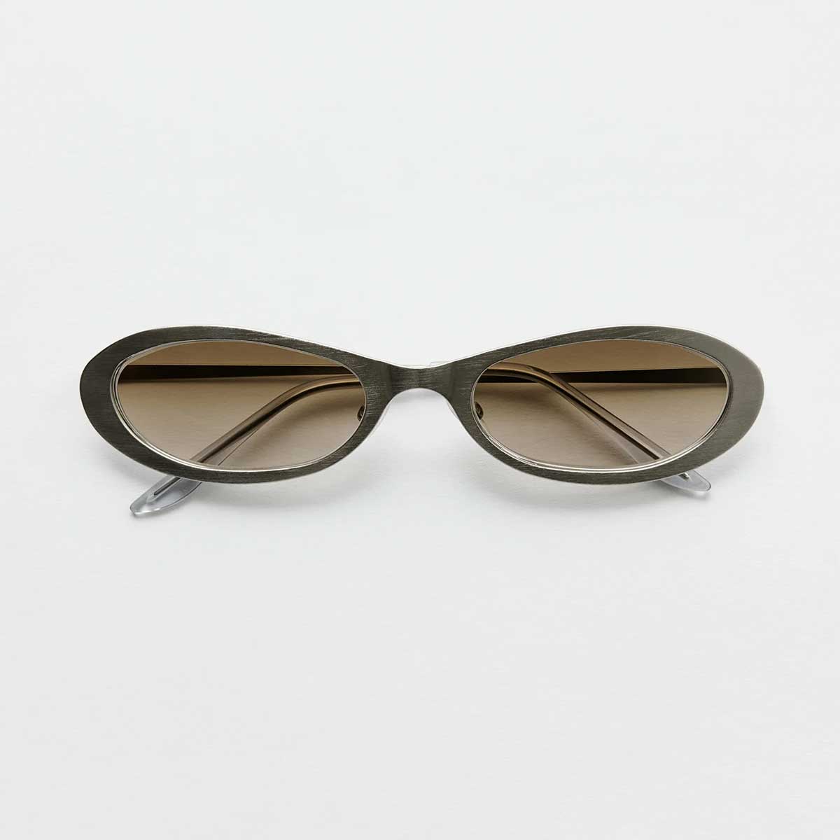 Tad sunglasses are now available in the It Bubble Steel color. These unisex sunglasses feature matte German silver frames and bronze temples, handmade in Italy. They feature Carl Zeiss Vision brown filter Category 2 lenses.