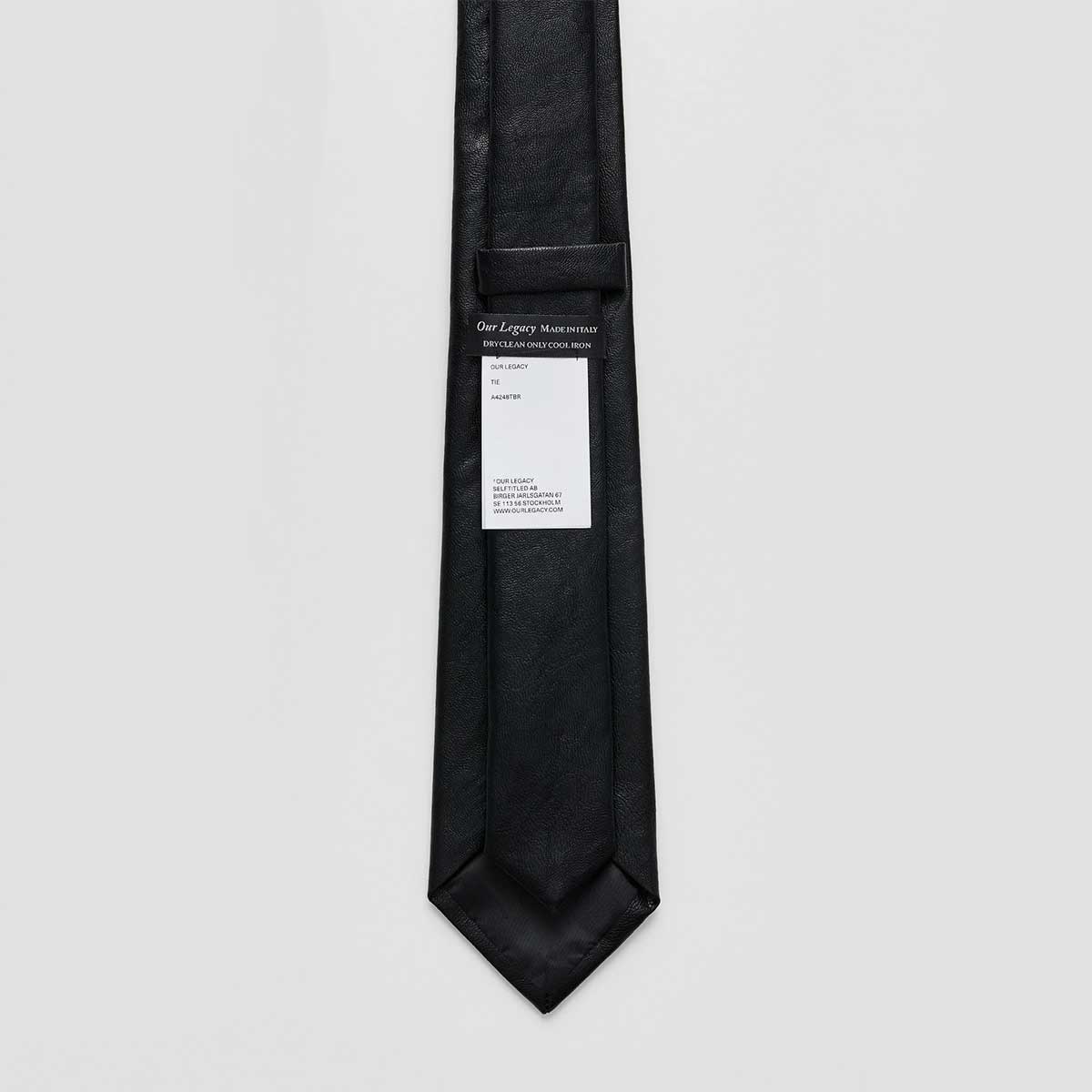 This genuine leather and faux leather tie is made from Italian faux leather, is lined, measures 7cm wide and has a pointed tip.
