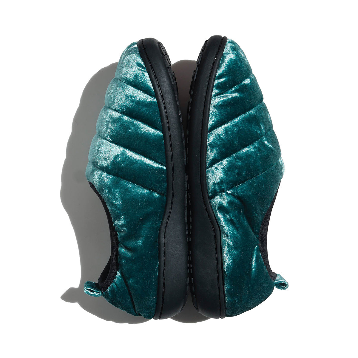 The bluish-green sheen lurking in the abyss. The deep teal-green sheen of the velvet material gives your feet a mysterious presence. Equipped with the newly developed HEXMAX insole, it provides comfort and a high-rebound feel. While inheriting the DNA of SUBU, it has evolved into a pair of shoes that allows you to enjoy your daily life more freely and comfortably.