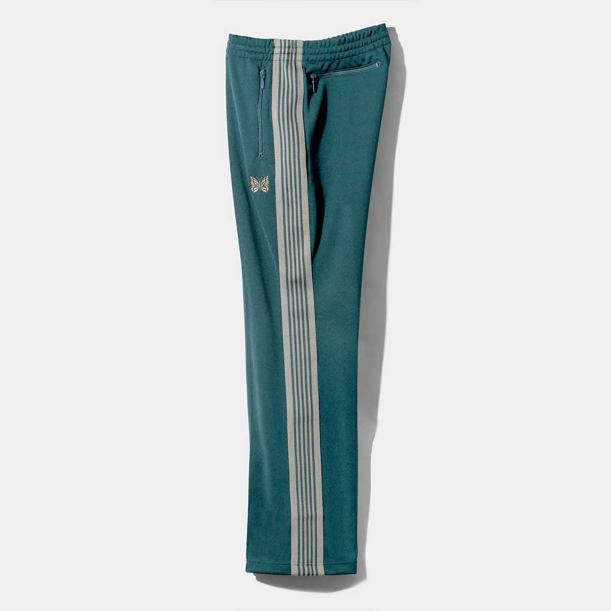 〈NEEDLES〉定番のトラックパンツが26年春夏シーズンの新色で登場。今シーズンはラスト、グリーン、チャコールの全3色です。伸縮性や通気性に富んだポリエステルジャージー素材を使用した快適性に優れたアイテム。独特の配色や刺繍デザインなど、一般的なスポーツウェアとは一線を画した華やかなファッション性が魅力となっています。豊富なシルエットで展開されており、こちらはブーツカットシルエットで、より個性が際立つ一本となっています。