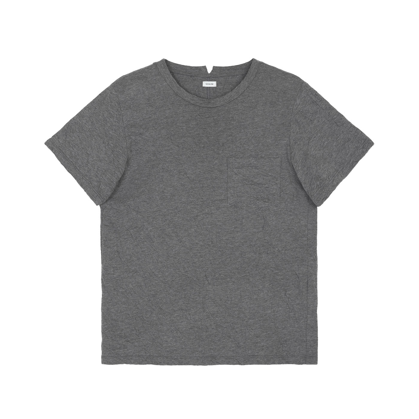 リブ仕様のクルーネック、フロント胸元のパッチポケット、センターカラーのスリット、そして背面のディテールが特徴です。
