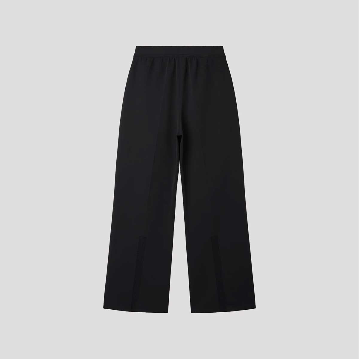 ミラノリブによる柔らかなハリ感と軽やかさが特徴のセミワイドパンツ。センタークリースがスマートで洗練された印象を与えます。日常から楽に着用できるドローストリング付きのゴムウエスト仕様です。