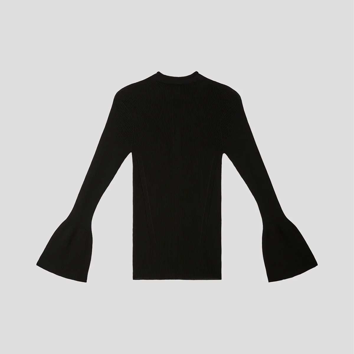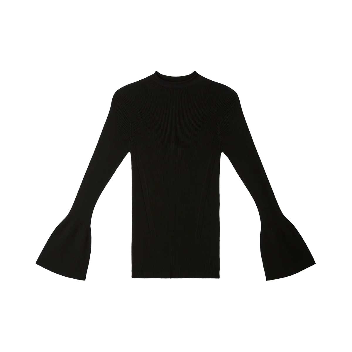 ハイゲージリブを用いたベルスリーブトップ。編み続きのベルスリーブがアクセントになったミニマルなデザインです。ロール状のネックとキュプラならではのさらっとした肌触りが気持ちよく、縫い代がなく、快適な着心地です。
